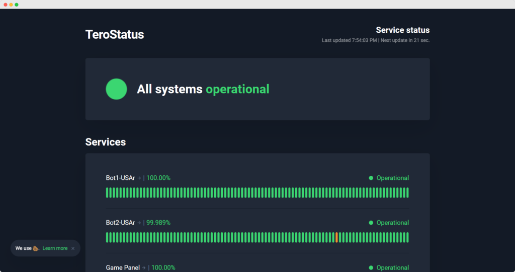 Experience impeccable server performance with our unmatched 99.99% uptime assurance, coupled with a dedicated status page that ensures you stay well-informed.